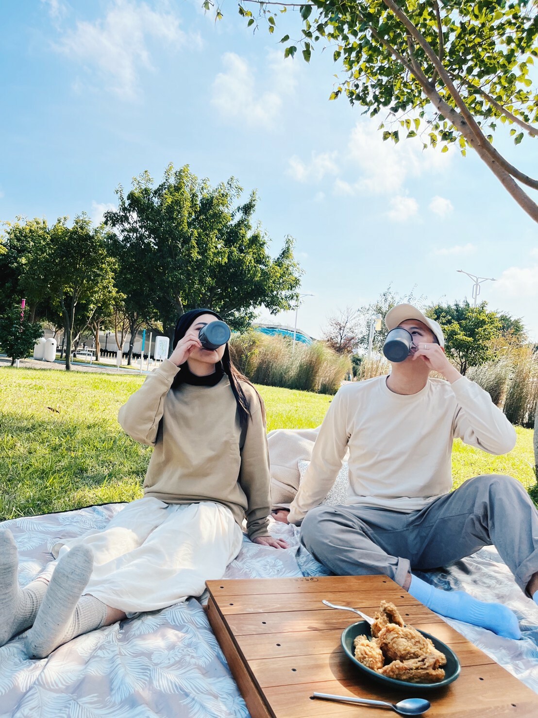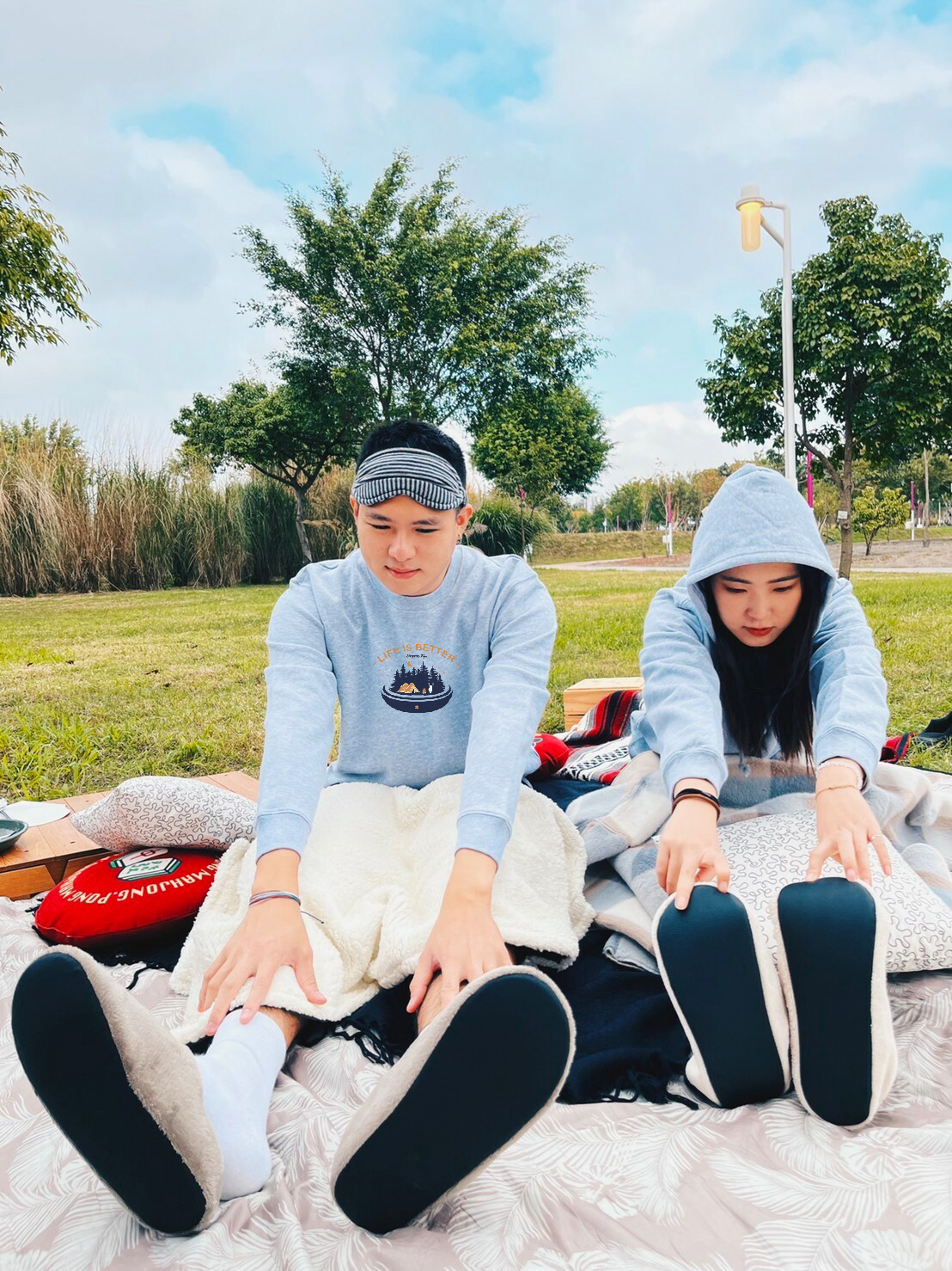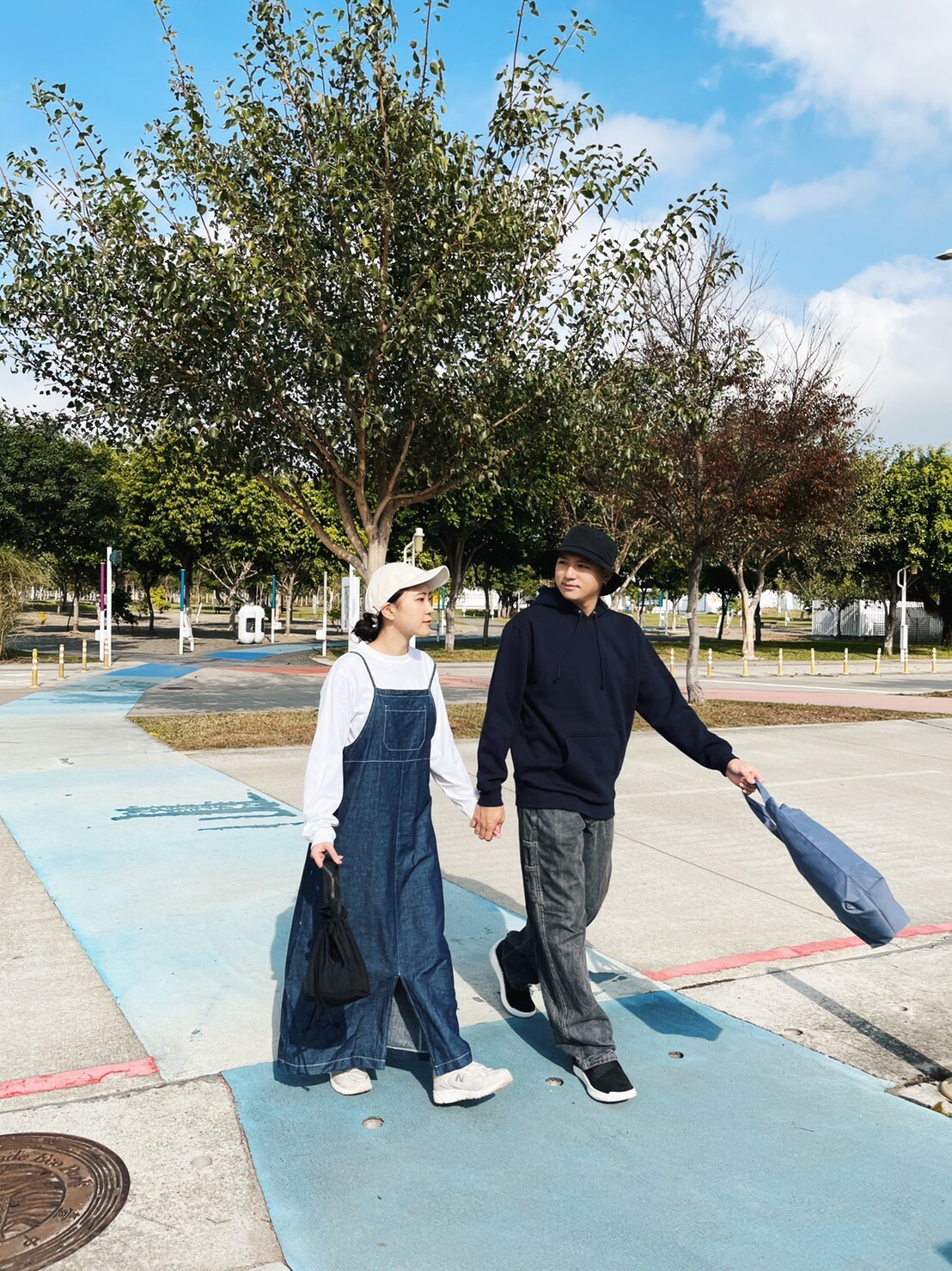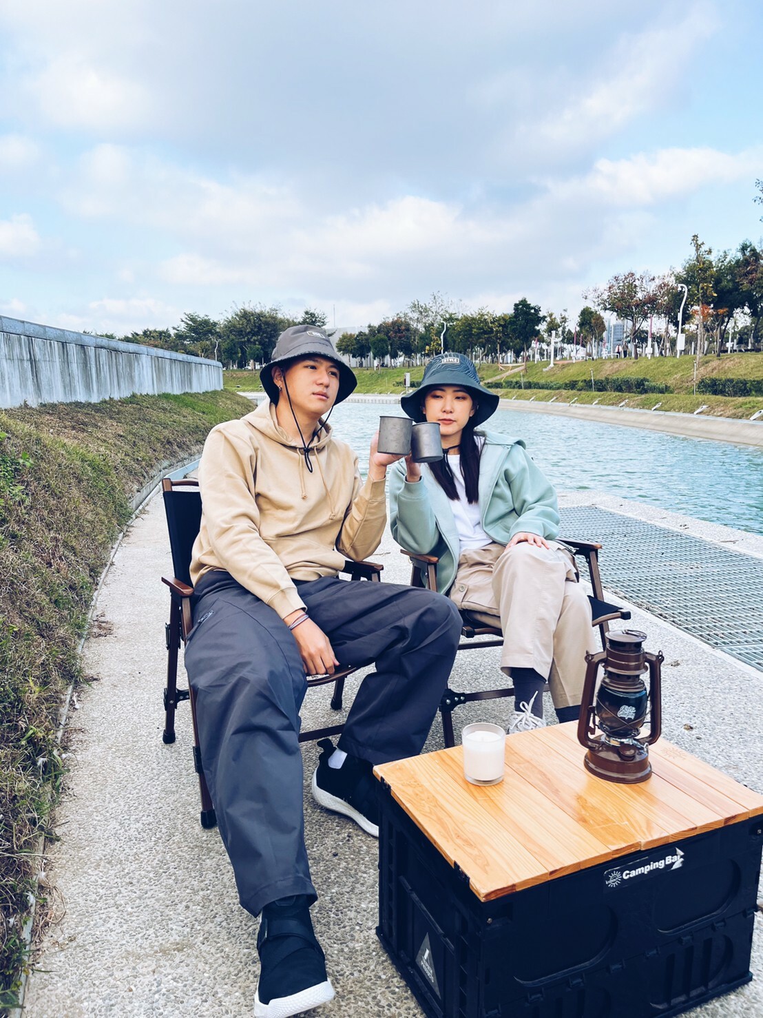 女生可以穿著較為寬鬆不合身的上衣,例如:帽T、大學T,會讓整體視覺感受上比較小隻(順便激發男友保護慾?),其實是因為戶外活動動作比較大,穿寬鬆也較舒適,這時候就不要在意顯不顯瘦了,不考慮合身剪裁,畢竟假日到戶外就是為了放鬆嘛~~~