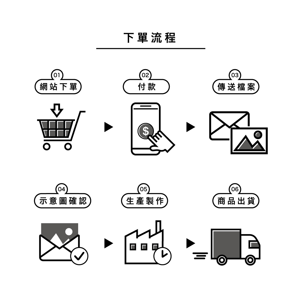 · 客製化商品下單後,會提供商品模擬圖對稿,對稿完成後約2-5個工作天寄出,不含例假日及節慶假日